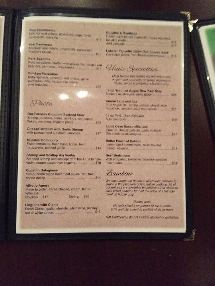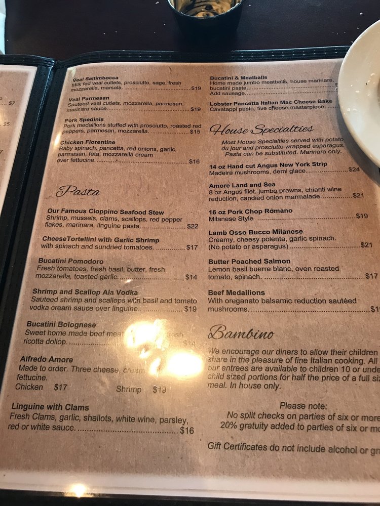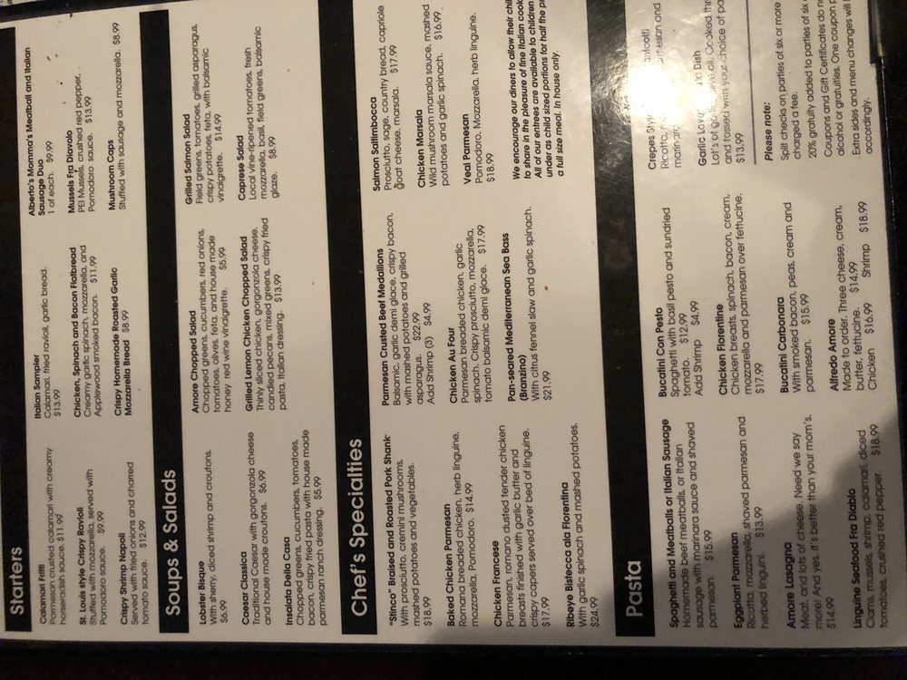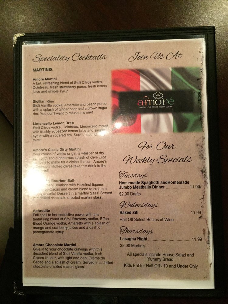 Amore also features outdoor seating, a full bar, and is wheelchair accessible, making it an ideal spot for groups and families. Whether you're dining in or taking out, this restaurant makes every meal feel special.